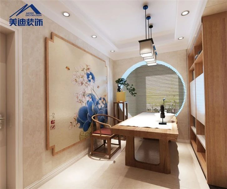 雖說書房的裝修風格需要與房屋的整體裝修風格相似,但是也要考慮到書房的功能性,應該展現比較雅致、清幽的風格效果。此外,書房的顏色要柔和,使人平靜,最好以冷色為主,如藍、綠、灰紫等,盡量避免跳躍和對比的顏色。