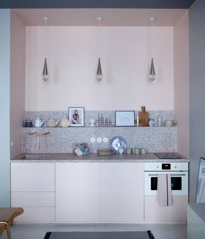 古老的水磨石原本平易近人,但其斑駁陸離的紋理與配色,卻帶來(lái)美輪美奐的夢(mèng)幻感。隨著科技的發(fā)展,現(xiàn)在的水磨石,極為平滑,它的曲線表現(xiàn)力,非常適合用于像現(xiàn)在所盛行的藝術(shù)裝飾和風(fēng)格,如果你對(duì)廚房有特殊要求,廚房臺(tái)面用水磨石簡(jiǎn)直太美了,水磨石的回歸,是一種追憶,也是未來(lái)的一種裝飾趨勢(shì)。