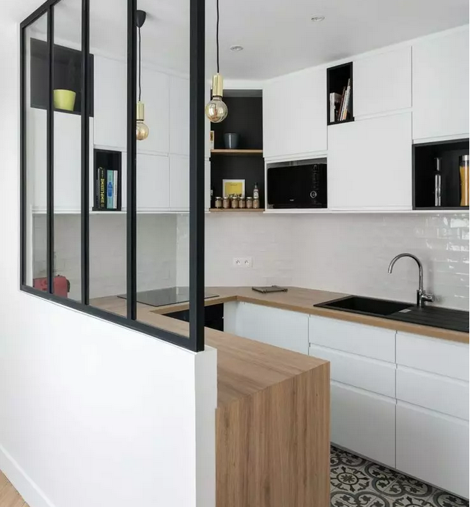 溫潤(rùn)的實(shí)木擁有美麗的木紋,適合用在多種風(fēng)格的廚房中,即使是使用了大量玻璃或者不銹鋼材料的現(xiàn)代冷峻風(fēng)格廚房中,因?yàn)閷?shí)木的加入,也會(huì)多一分溫暖的感覺(jué)。