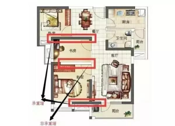 4、通過部位判斷:外墻通常都是承重墻,和鄰居共用的墻也是。一般的非承重墻在衛生間、儲藏間、廚房及過道。