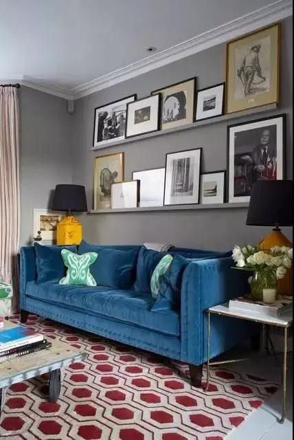 淺藍背景墻+淺灰色沙發+照片墻,藝術氛圍極其凸顯。