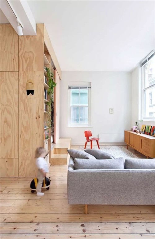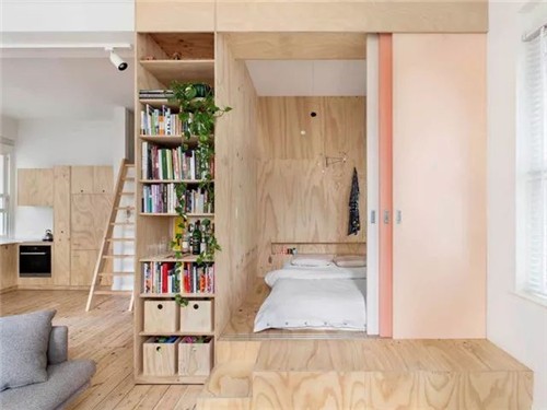 設(shè)計(jì)師利用松木復(fù)合板將整個(gè)房間劃分出來(lái)