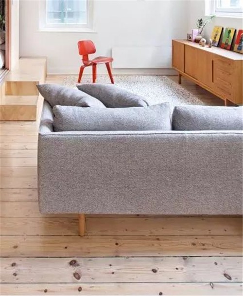 客廳的擺放著灰色轉(zhuǎn)角沙發(fā)