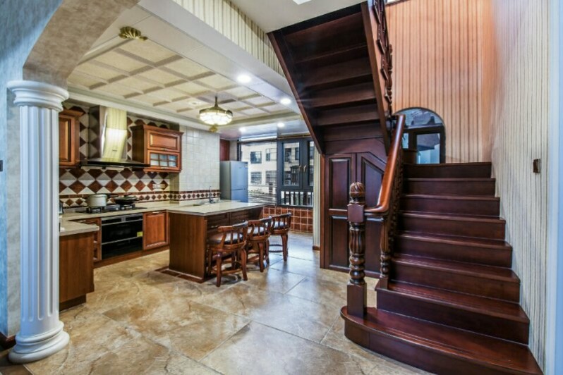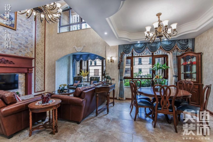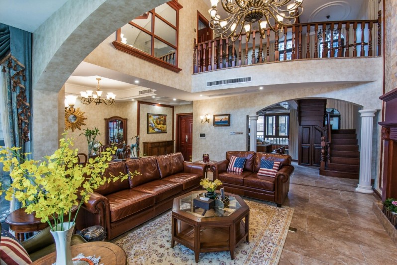 業(yè)主楊老師偏愛深色系帶來的沉穩(wěn)感,一眼便相中了美式風(fēng)格。設(shè)計師多處采用弧形設(shè)計,如弧形門洞、弧形樓梯、弧形欄桿等來打破空間的呆板,表達出美式風(fēng)格的自由與隨性。一步移景,亮皮沙發(fā),八角茶幾,地毯,壁畫等,家中的每件物品都能感受到屋主對品質(zhì)生活的追求。