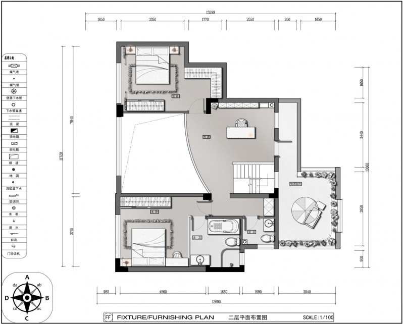設(shè)計說明:房屋是改善型住房,居住人口為2-3人。在空間處理上,主要考慮居住者的舒適度和生活習(xí)慣,實現(xiàn)業(yè)主以前無法滿足的休閑娛樂功能需求。原始戶型結(jié)構(gòu)布局的不合理,可通過倒板增加書房、花園和洗衣房,滿足業(yè)主生活情趣。