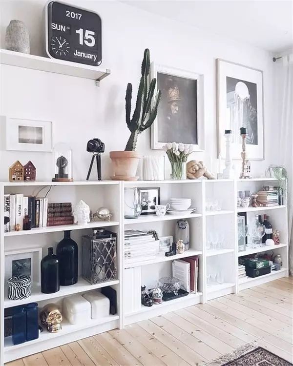 開放式架子可以增加小房間深度,降低沉重感,還能當作展示架。
