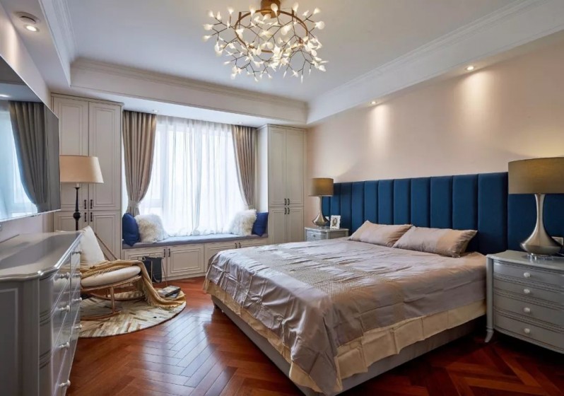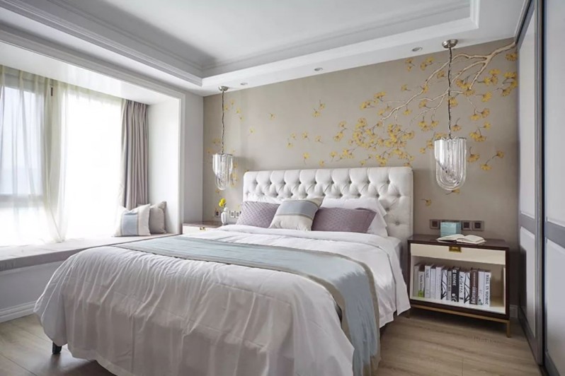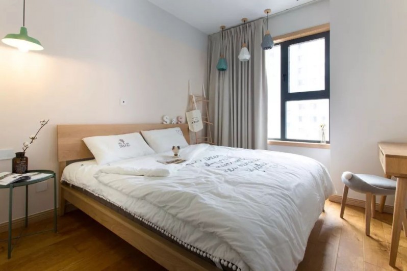 床頭柜和床頭燈是床兩側的必備搭配,所以也可以在這兩者上下功夫。床頭燈除了常見的臺燈之外,還有更多選擇,比如吊燈、壁燈、搖臂燈、落地燈等等。床頭柜也有各種造型,還可以用邊幾、木墩、箱子、書桌、化妝臺等替代,考慮功能的同時,在造型上提升裝飾感。