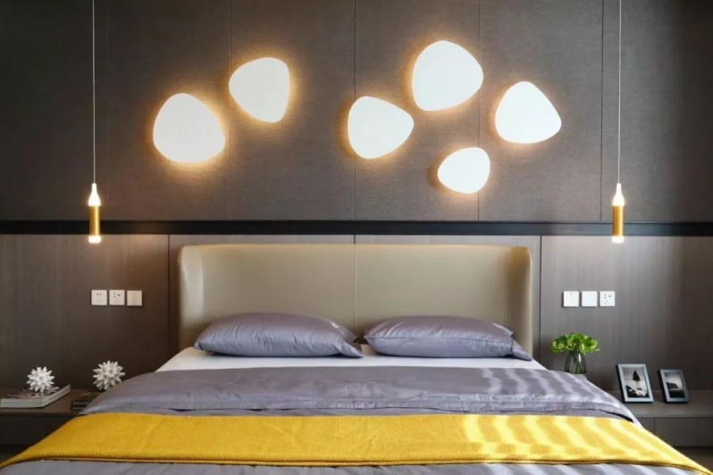 ▲ 左右對稱的壁燈相對于臺燈來說可以空出床頭柜的臺面,甚至不用床頭柜都沒有問題