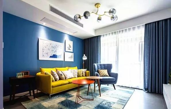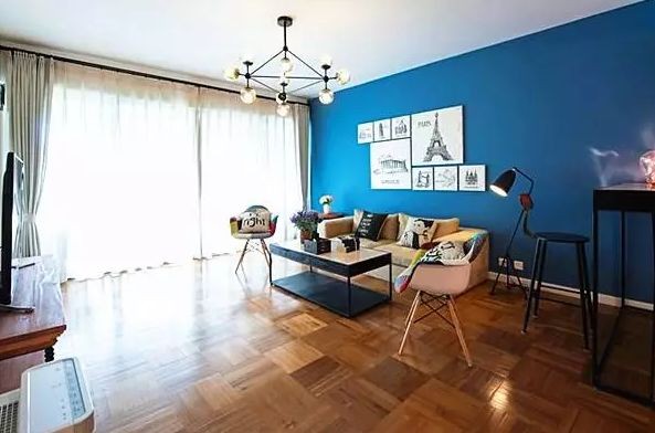 ▲湖藍色+深藍色:湖藍色墻紙&深藍色窗簾,有效的緩解壓力和疲勞,循序漸進,富有動感。