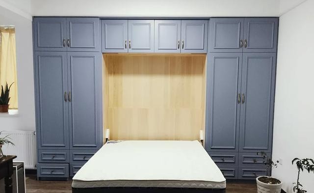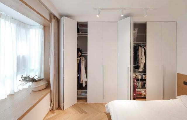 衣柜折疊門,是為了規避臥室空間不夠,導致床頭柜無法正常安置。