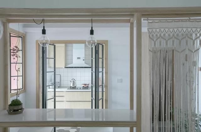廚房折疊門是拯救顏控的好藥,很多人心心念開放式,但是無法做成開放式,如果空間稍足,不妨試試折疊門,而且折疊門還能拯救一個“開放商”的bug,就是將廚房門洞設置太窄,做推拉門進廚房,不能全開,體型大的人都不好進。