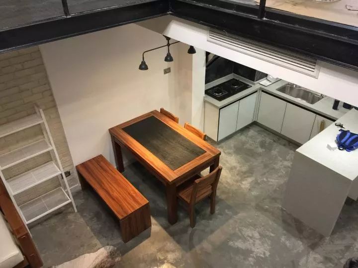 關于餐桌,其實可以考慮加一條長凳,不會像椅子那么占用空間,還很實用,平時可以放到餐桌里面去,節省空間。