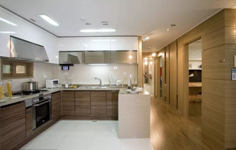 廚房和客廳的交界處,一般客廳會比廚房高出1cm,防止廚房的水流進客廳,如果是地磚,一定要把弧度磨成45°角,首先是美觀,最重要的是可以防止走路被絆倒。