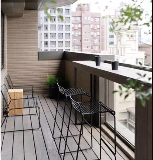 面積比較小的陽臺可以考慮一下改造成休息區,可以像變下面這樣的mini餐桌和自己愛人來一場浪漫的燭光晚餐。