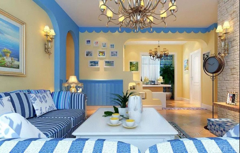 地中海風格對于城市家居的魅力,可能就在“白、藍、黃”三色搭配的視覺沖擊,能帶來一種雖然在家中,但是仿佛已經處于沙灘海岸之中,特別適合向往自由,喜歡旅行的家庭。