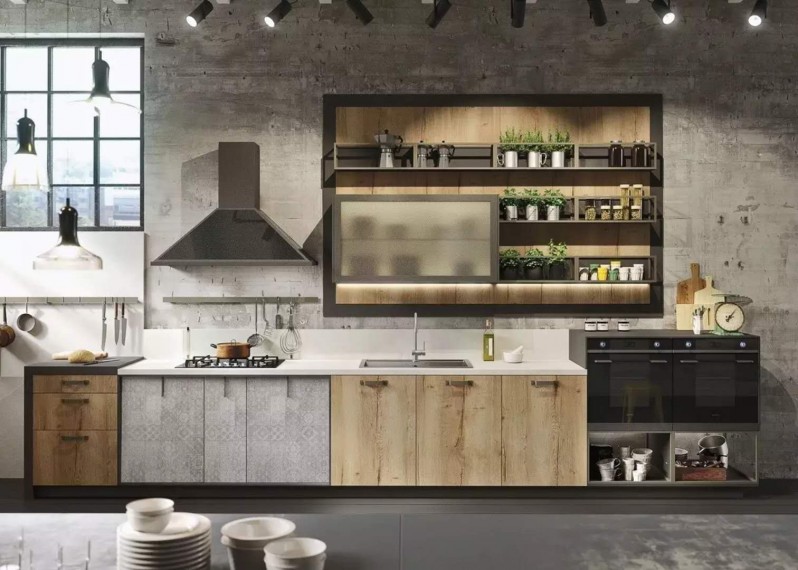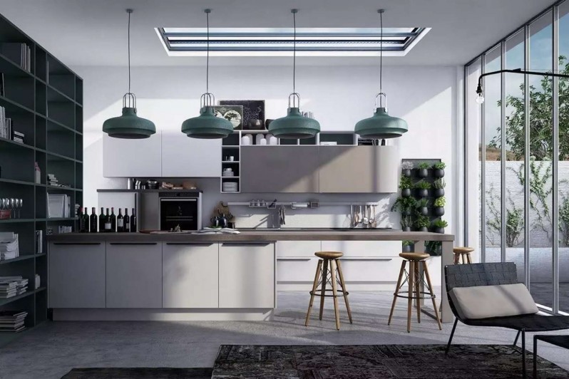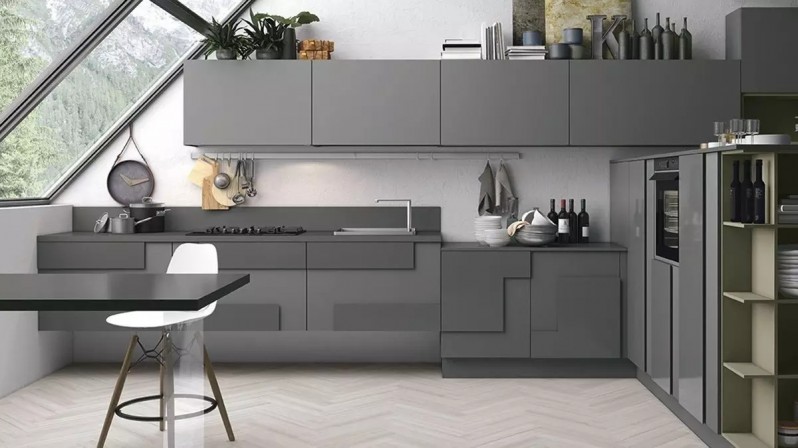 高級灰廚房,自帶德式櫥柜的嚴謹做派,對門板構造及線條的出其不意設計,讓人眼前一亮。