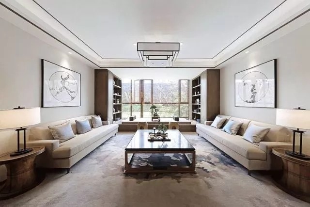 再來說說空間感,新中式裝修風格講究空間的層次感,在需要隔絕視線的地方,則使用中式的屏風或窗欞、中式木門、工藝隔斷、簡約化的中式“博古架”,通過這種新的分隔方式,單元式住宅就展現出中式家居的層次之美。再以一些簡約的造型為基礎,添加了中式元素,使整體空間感覺更加豐富,大而不空、厚而不重,有格調又不顯壓抑。