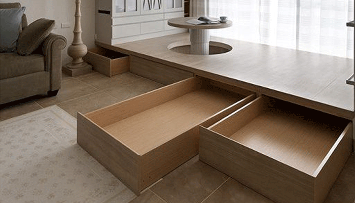 雖然有收納功能,但收納的效果不如柜子,并且還有一個不方便的就是,放進去容易,拿出來麻煩,這也是地臺使用率較低的一個原因。什么都需要清潔保養,地臺也是一樣的,地臺主要是木料,又因為其安裝在地面,地面潮濕度要相對高,遇上潮濕的雨季感受就不好了,很容易受到天氣的影響,并且因為地臺上的死角很多,容易積灰,還不容易清潔,時間久了,沒清理干凈的地方就會越來越臟,影響我們的心情呢。