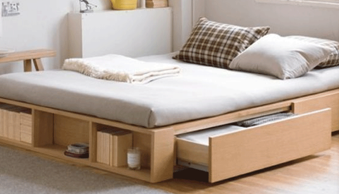 收納功能是必須要說的,上面提到過,集收納與休息于一體,讓室內的收納壓力降低,但是地臺收納最好收納小型的物品比較好,太大件的不方便也放不下。