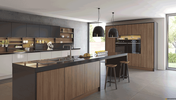 智能廚電都知道吧,是現代家庭的廚房必備之物了,像烤箱蒸箱以及消毒柜等都是可以鑲嵌到櫥柜里的,但是有一個要求,那就是先量好廚電的尺寸,以免柜子大小與廚電大小搭配不上,一切都是白搭;另外,家里想要設計地柜的,在地柜設計上也可以有花樣,比如設計成那種可以將小家電收納起來的地柜,要用的時候講屜子拉出來,不用時又推進去,外觀上十分整齊干凈。