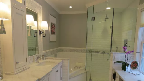 衛生間附近有洗衣區,洗衣機周圍可以安置一個量身定做的柜子,放著一些消毒液、洗衣液、軟化劑等存放洗滌用品,便于洗衣機的使用。馬桶周圍同樣可以設置吊柜,儲物柜,用于存放垃圾桶、廁紙,以及臨時存放書報等。鏡子的設計同樣可以考慮鏡柜,這里面可以放好多東西,比如牙刷、牙膏、漱口水、梳子、口杯等,又干燥又整齊。