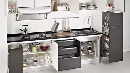 廚房的電器是越來越多,櫥柜可以考慮做到剛好就行,考慮下電器平臺,給微波爐,電飯煲,煲湯的,果汁機,烤箱機等都放進里面,同時根據廚房收藏功能的不同,櫥柜設計要求分設柜體、拉籃、抽屜。其中拉藍靠近灶臺位置,存放做飯用的調料、刀、勺等,方便做飯時隨時取用。同時,在廚房墻面設置足夠掛桿,方便掛放廚房吊掛件,小刀具,或者其他零星物品,這樣看起來才整齊,儲物功能非常強大。廚房櫥柜柜門和抽屜如果想要人性化服務,就建議考慮帶阻尼設計,柜門開合更安靜。