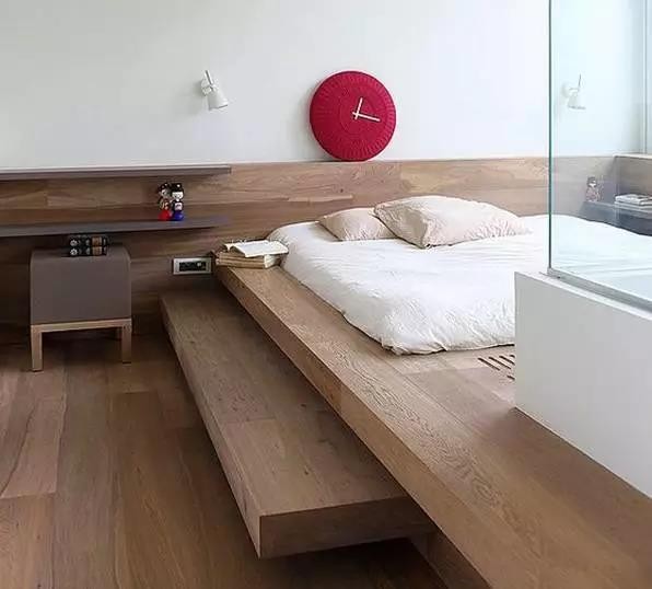 也不用買床,直接做一個抬高的地臺,在上面放一個床墊,你就可以在上面自由地打滾了。