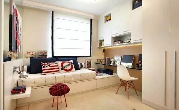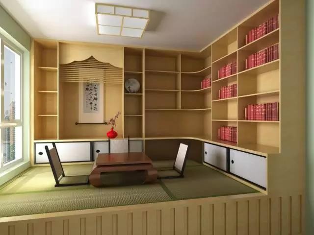 書房和榻榻米是最般配的了,可以直接做成榻榻米地臺,再放個軟軟的墊子,在日常生活中可以作為沙發使用,家里來了客人將墊子拿開就變成了一張床。