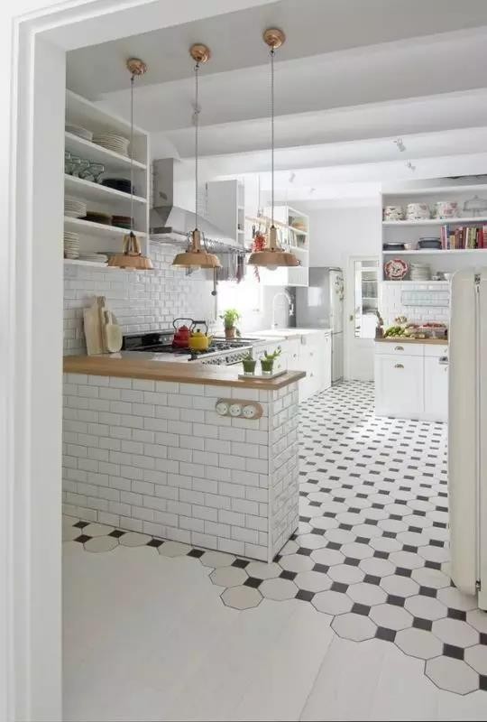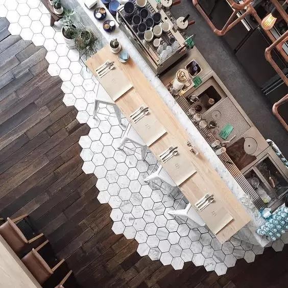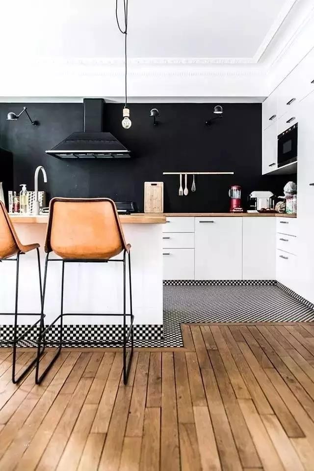 比如廚房和餐廳就是最適合用瓷磚和地板拼接的區域,廚房多油煙,不適合鋪木地板,比較難以清理,鋪瓷磚就方便很多,瓷磚的油污相對來說就很容易清理了。