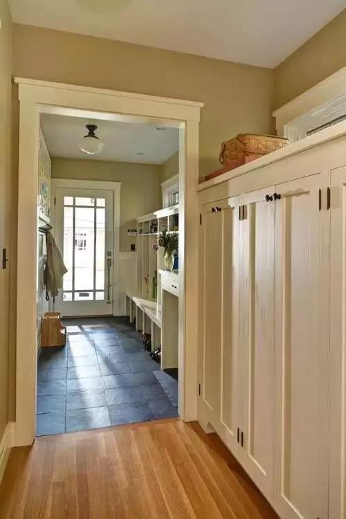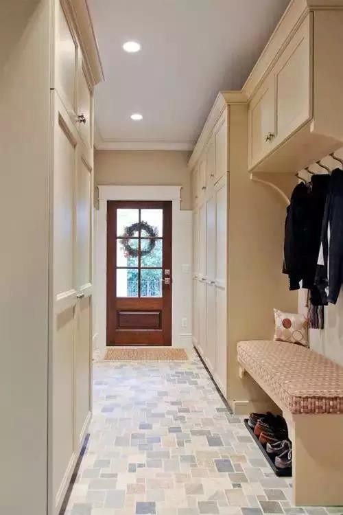 在進(jìn)門處也可以設(shè)計(jì)出一塊屬于衣帽間的小天地,其實(shí)非常方便進(jìn)門以及出門的時(shí)候在門口處整理自己的著裝。