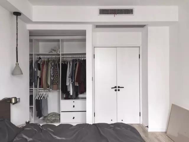 臥室里某一面墻較大的,可以把它利用起來(lái)裝成一整面的衣帽間,甚至可以通過(guò)開(kāi)放式的掛鉤等形式,來(lái)實(shí)現(xiàn)自己夢(mèng)寐以求的衣帽間小夢(mèng)想。