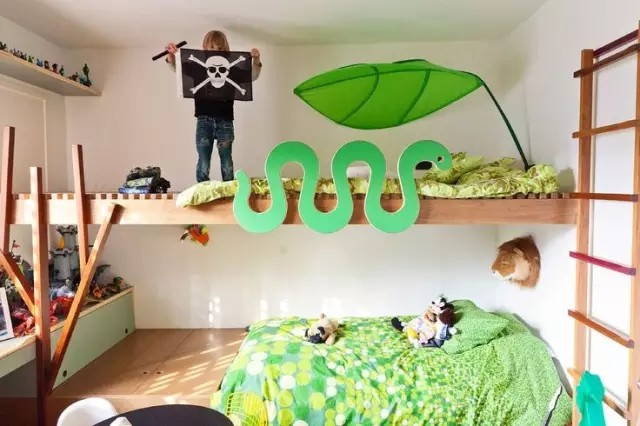 ▲ 房間用綠色單品做點綴,兒童房也可以生機勃勃。