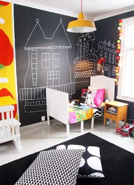 ▲黑板墻,讓孩子的童真童趣發揮到極致。