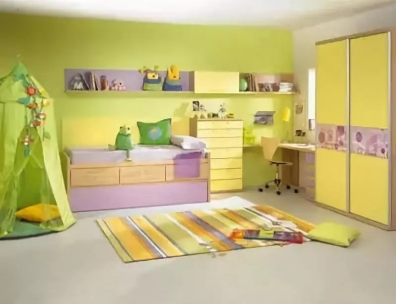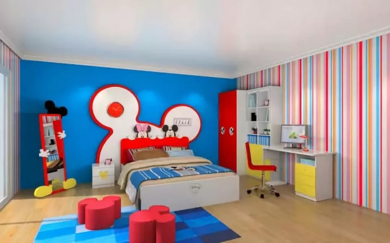 色彩宜明快、亮麗、鮮明,以偏淺色調(diào)為主,盡量不取深色。橙色及黃色帶來歡樂和諧,粉紅色帶來安靜,綠色與大自然最為接近,海藍(lán)系列讓孩子的心更加自由、開闊。紅、棕等暖色調(diào)給人熱情、時尚、有效率的感覺,用這些來區(qū)分不同功能的空間效果最好,過渡色彩一般可選用白色。