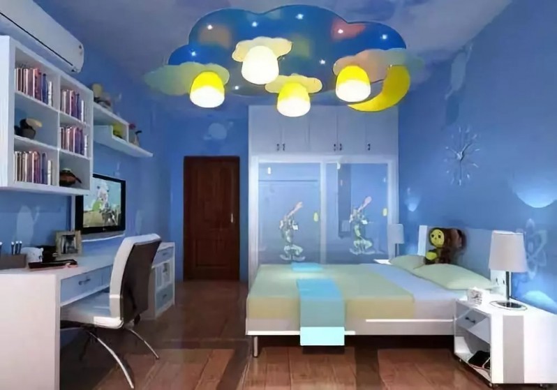 適合且充足的照明,能讓房間溫暖、有安全感,有助于消除小孩獨(dú)處時的恐懼感。兒童房的全面照明度一定要比成年人房間高,一般可采取整體與局部兩種方式。