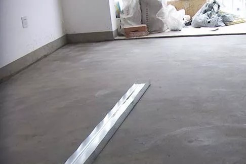 ① 用長尺或直尺,靠墻面檢查地面是否平整。