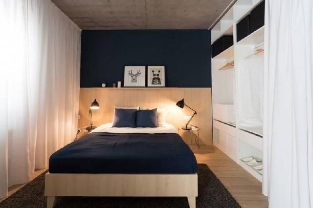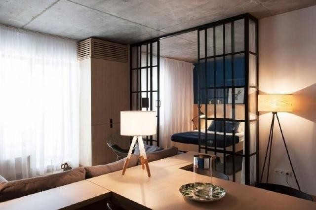 臥室與客廳之間是采用現在超級流行的黑框隔斷