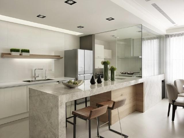 一般最常見的石質桌面,例如大理石、云石及花崗巖等等是非常適合走現代風或者奢華風路線的廚房。