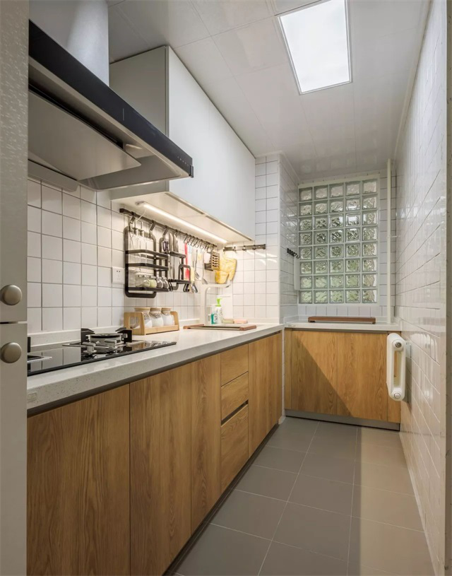 ▲ 廚房在戶型中間,沒有窗戶,在一端開個洞用玻璃磚替換