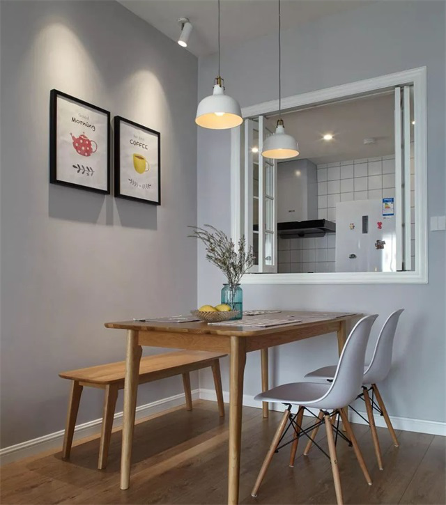 有些戶型廚房就在餐廳隔壁,但廚房門就是在另外一邊,這樣每次燒菜上菜都要繞一圈出來,雖然也沒多遠,但動線總是不夠順。如果在餐廳和廚房之間的隔墻上開個窗,就解決了傳菜問題,同時兼得采光等其他好處。
