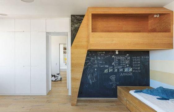 一面墻都是黑板,這應(yīng)該是每個(gè)喜歡涂鴉的孩子的向往吧?孩子們本來(lái)就喜歡在墻壁上隨意涂畫(huà),但如果是普通墻面,很容易留下臟亂的印記,且不易清除。那么何不創(chuàng)造在兒童房創(chuàng)造一面黑板墻,讓孩子在他的小世界盡情發(fā)揮自己的藝術(shù)激情呢?同時(shí)還可結(jié)合黑板區(qū)域,打造成溫馨活潑的親子樂(lè)園。
