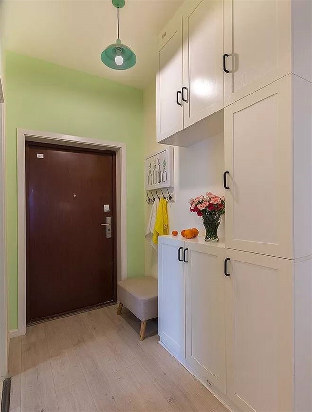 玄關處不僅可以設計一個鞋柜,還可以設計一個衣柜,在出門前就可以夠輕松換裝,簡直是便利大家的利器。