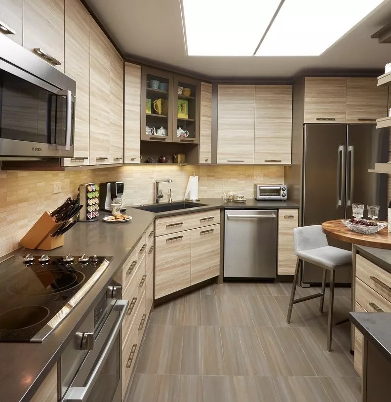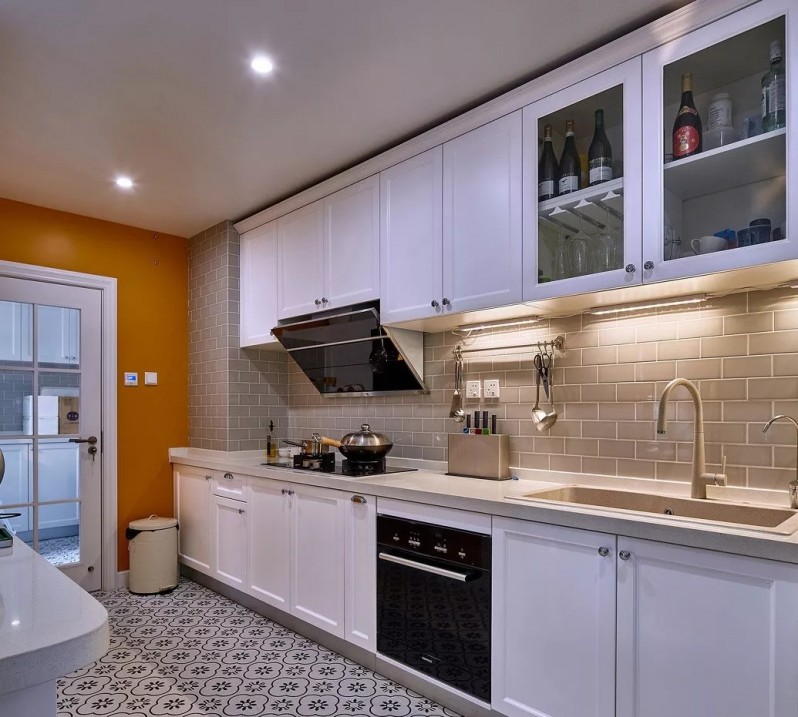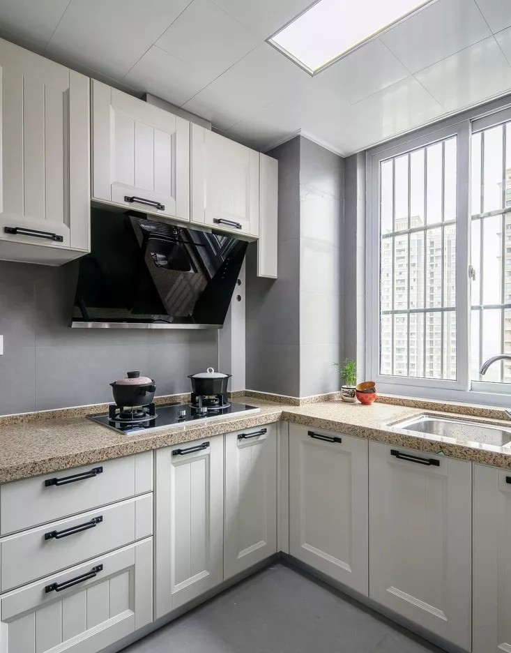 一般的長方形廚房較為適合設計L型櫥柜,不僅空間利用率直線飆升,還能留出空間給業主適配各種廚房家電,增強廚房的兼容性。