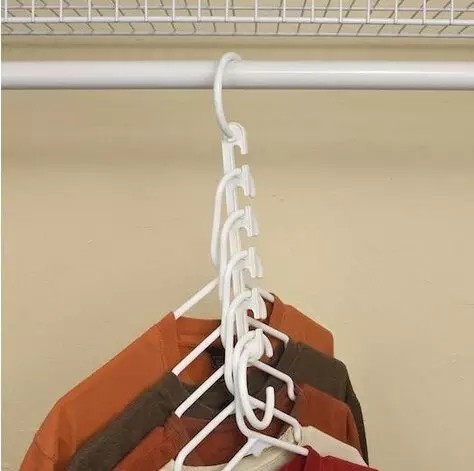 衣架占位比較大,一般用來懸掛一些易皺不能折疊的衣服,節省衣架放置空間的一個妙招就是在衣架頸部扣一個易拉環,這樣能掛更多的衣服,節省空間。