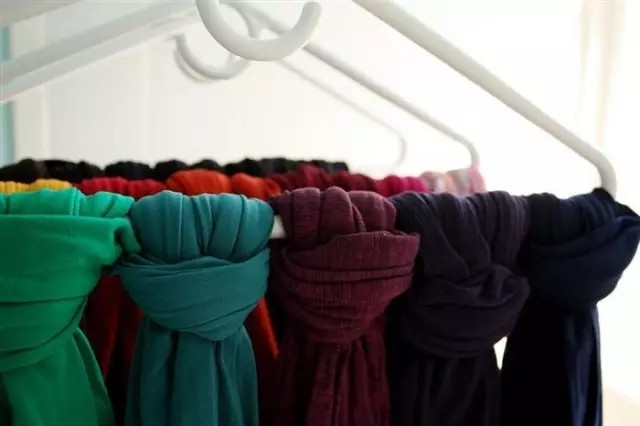 圍巾也一一系在衣架上清晰明了,節省空間~