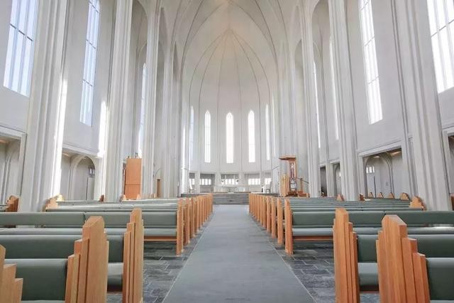 與歐洲許多教堂內(nèi)飾不同的是,哈爾格林姆斯教堂沒有過多繁雜的裝飾和色彩,大片的白色背景與簡約的設(shè)計,只給人純凈、優(yōu)美的感受。
