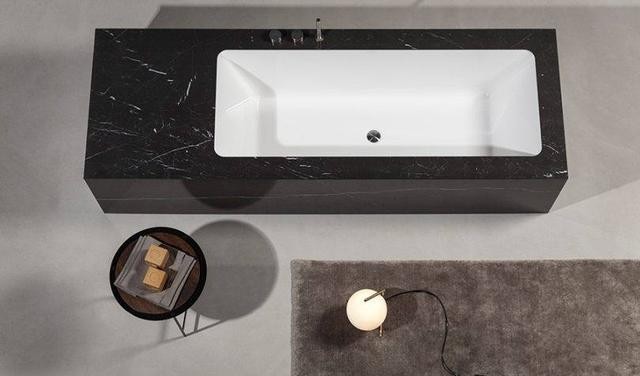 在浴室中使用大理石更傳統,但效果顯著。地板、垂直瓷磚、立柱式洗臉盆、大浴缸以及各種細節都能使整體環境呈現高級感和散發永恒的魅力。如果你正在尋找一些不太傳統的東西,可以考慮一下選擇黑色大理石和方形線條設計,如下圖。最后的效果看起來大膽而獨特,兼具大理石帶來的優雅和高貴。