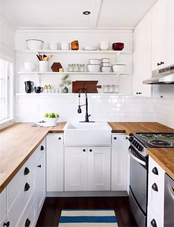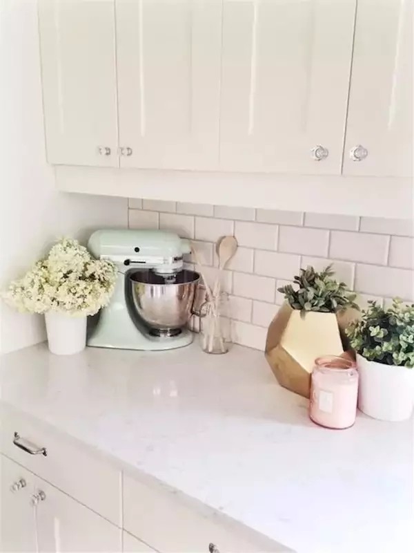喜歡清新文藝廚房風(fēng)格的可以選擇木質(zhì),木頭給人最原始,溫暖自然的感覺,看起來也更溫和舒適。木質(zhì)的不管是實(shí)木還是防火板,都要注意的是不要直接把滾燙的鍋?zhàn)臃派先ィ謇硪欢ㄒ诳臁?