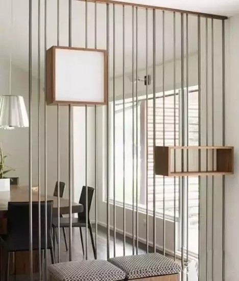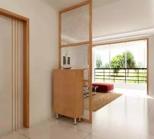 是以大屏玻璃作裝飾遮隔,或在夾板貼面旁嵌飾噴砂玻璃、壓花玻璃等通透的材料,既可以分隔大空間,又能保持整體空間的完整性。