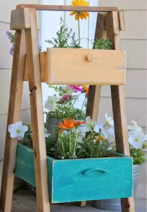梯子的每一層都釘個抽屜,不管是收納雜物還是養(yǎng)些花花草草,都是一種樂趣。